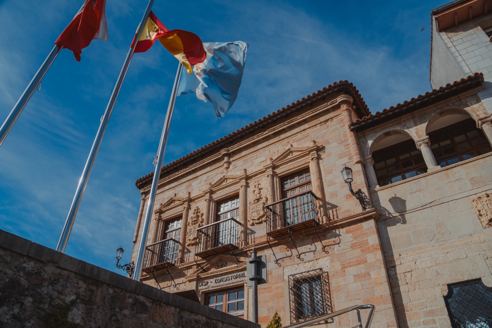 Aunque el interior no siempre está abierto al público, el exterior ya merece la pena la visita. De hecho, recomendamos rodear el edificio por completo para observar todos sus matices. Además, si levantas la vista, podrás admirar la tríada de poder que el palacio forma con la iglesia y el castillo: nobleza, religión y defensa.